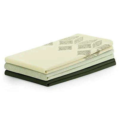 AmeliaHome Set of 3 Tea Towels Cotton Kitchen 50 x 70 cm Geometric Pattern Letty Dark Green Olive