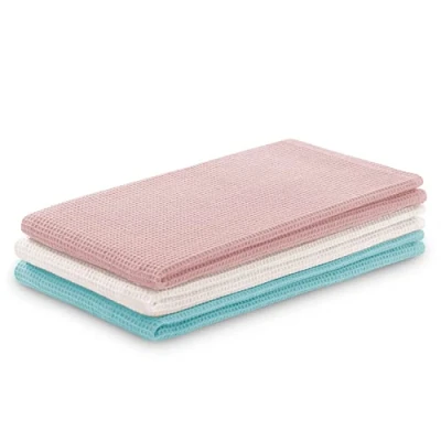AmeliaHome Set of 3 tea towels, cotton, kitchen 50 x 70 cm, waffle pique, fabric, Letty pink, turquoise