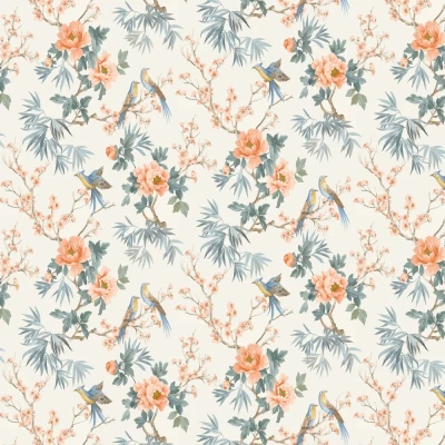 Amelie Chinoiserie Japan Asian Oriental Style Wallpaper Perfect for Bedrooms, Living Rooms Orange Rasch 260561