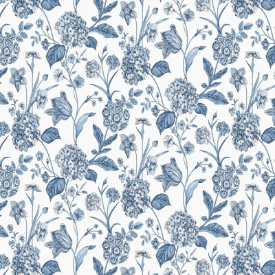 Amelie Hydrangea Floral Themed Hand Drawn Effect Wallpaper for Bedrooms, Hallways, Dining Rooms Blue/White Rasch 260169