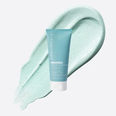 AMELIORATE Clarifying Face and Body Mask 100ml Detox Clay Treatment For Blemish Prone, Congested Skin Exfoliates & Reduces Redness with AHAs Dermatologically Approved
