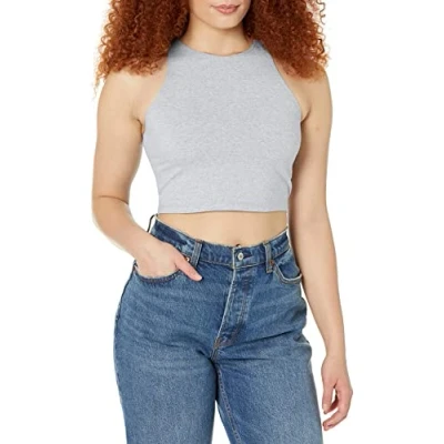 American Apparel Women's Cotton Spandex Sleeveless Crop Top Shirt, Heather Grey, Large