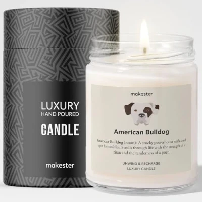 American Bulldog Candle Over 100+ Breeds 220g Soy Wax Madagascan Vanilla & Jasmine Gift Dog Candles by Makester