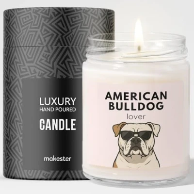 American Bulldog Gifts Luxury Soy Wax Candle Vanilla, Jasmine, Sugared Almond Dogs in Shades Makester
