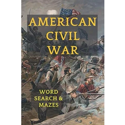 American Civil War: Word Search and Mazes for Teens Adults. Battles, Union Confederate Generals, Gold.