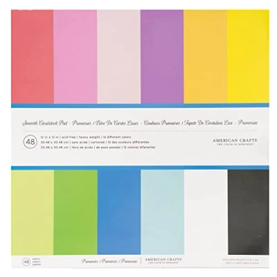 American Crafts 12x12 Inch Cardstock Pad Primaries, 48 Sheets, Die Cutting, Embossing, Card Making, Scrapbooking, Acid Free, Archive Safe, Vibrant Colors, Cutting Machines, and More