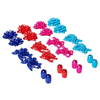 American Greetings All Occasion Bows and Ribbon for Gift Wrapping, Turquoise, Fuchsia, Red Royal Blue (24 Count)