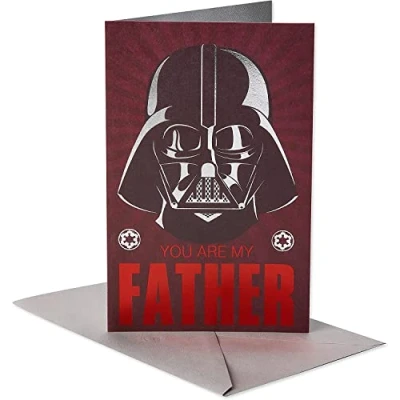 Front Message: You are my father Inside Message: And Dad - you rule. Hope your birthday does, too This Star Wars birthday greeting card for a dad features Darth Vader and silver and red foil embellishments Wish your dad an epic birthday! This Star Wars-themed birthday card for a dad features Darth Vader’s iconic mask in a bold design embellished with shimmering silver and red foil. Perfect for the best dad in the galaxy! Envelope included