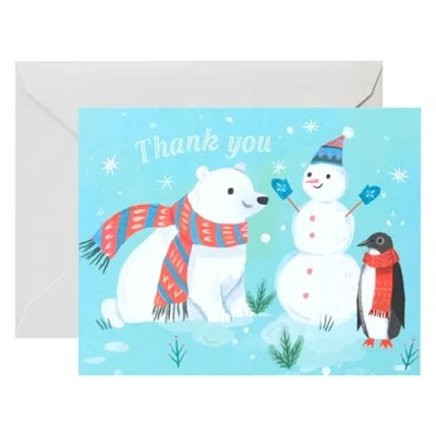 American Greetings Blank Christmas Thank You Cards, Winter Animals (25 Count)