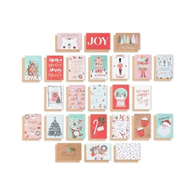 American Greetings Christmas Cards with Envelopes, Trendy Pink Pastel Designs (25 Count)
