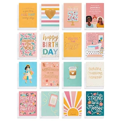 The multiple greeting card package includes a variety of cards perfect for any mom in your life! The multiple greeting card package includes a variety of beautiful birthday cards, support, friendship cards, blank cards and thinking-of-you cards. 16 unique designs, 2 cards of each design. Envelopes included. Assorted greeting cards are perfect for any mom figure in your life, including a friend, girlfriend, wife, co-worker, classmate, family member or relative like daughter, mom, grandma, granddaughter, niece and more! American Greetings offers exceptional greeting cards, gift wrap and celebration products so you can connect in ways that fit your personality and authentic style