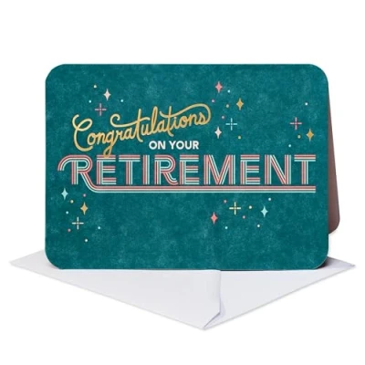 Front Message: Congratulations on Your Retirement Inside Message: Hope you know how much you mean, and how much you'll be missed. This horizontal retirement card by American Greetings features bold gold foils and rounded edges. This card measures 6.75 in. x 4.625 in. White envelope is included. American Greetings offers exceptional greeting cards, gift wrap and celebration products so you can connect in ways that fit your personality and authentic style.