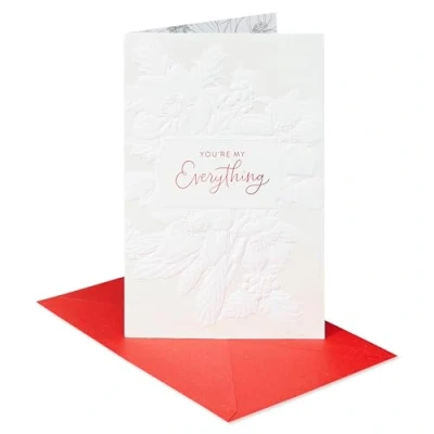 Front Message: You’re My Everything Inside Message: You make my days happy, my nights warm, and our life together amazing in so many ways. You're the one I love with all my heart. Merry Christmas This romantic Christmas card features red foils and embossing Card measures 5.75 in. x 8.5 in. Envelope included American Greetings offers exceptional greeting cards, gift wrap and celebration products so you can connect in ways that fit your personality and authentic style
