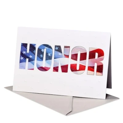 Front Message: Honor Inside Message: Thank you for all you have done. This thank you military card by American Greetings features a bold message with silver foils to compliment. This card measures 6.75 in. x 4.625 in. Gray envelope is included. Perfect for writing thank-you messages for birthday parties, elementary graduations, teacher appreciation and more