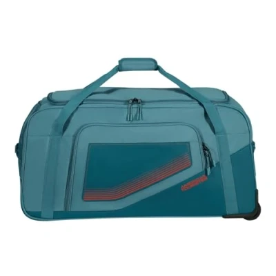American TouristerModel: Duffle with wheels, Colour: Petrol, Material: Recycled Polyester with TPU coating, Height: 77.00x42.00x40.00cm, Weight: 2.90kg, Volume: 129 L, Warranty: Legal warranty