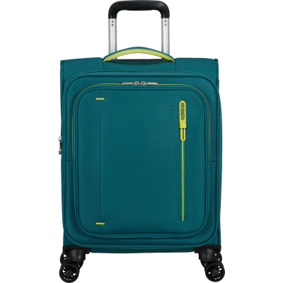 American TouristerModel: Spinner (4 wheels), Colour: Misty Teal, Material: 100% Polyester, Height: 55.00x40.00x23.00cm, Weight: 2.40kg, Volume: 38.5/43.5 L, Warranty: Legal warranty