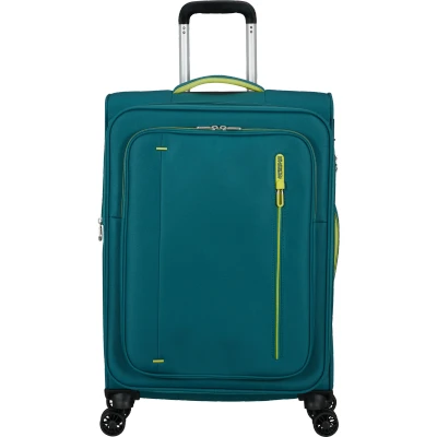 American TouristerModel: Spinner (4 wheels), Colour: Misty Teal, Material: 100% Polyester, Height: 67.00x44.00x26.00cm, Weight: 3.00kg, Volume: 67/74.5 L, Warranty: Legal warranty