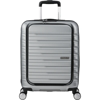 American Tourister Flashline Spinner S, Handgepäck mit Frontlader, 55 cm, 34 L, Silber (Sky Silver)