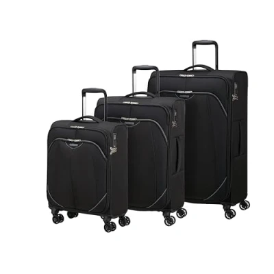 American Tourister Poproll 3 Piece Soft Luggage Set (Cabin, Medium, Large), Lightweight Black (Black)
