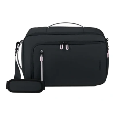 American TouristerModel: 3-Way Boarding Bag, Colour: Black, Material: 100% by weight of the outer fabric and interior lining are made with post-consumer recycled PET plastic., Height: 25.00x40.00x20.00cm, Weight: 0.70kg, Volume: 21 L, Warranty: Legal warranty