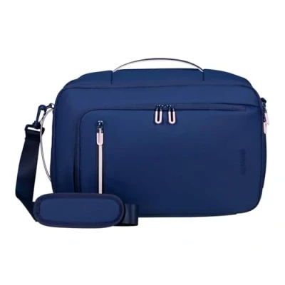 American TouristerModel: 3-Way Boarding Bag, Colour: Navy, Material: 100% by weight of the outer fabric and interior lining are made with post-consumer recycled PET plastic., Height: 25.00x40.00x20.00cm, Weight: 0.70kg, Volume: 21 L, Warranty: Legal warranty