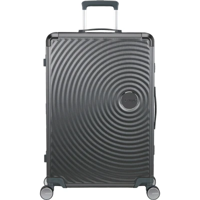 This state-of-the-art collection combines our iconic ripple design and signature boxy shape with the strength and elegance of aluminum. Available in three sizes, each SoundBox Alu comes equipped with two ergonomic one-click TSA locks for secure access to your belongings. Enjoy optimal maneuverability with the smooth 3-ball bearing double wheels that make travel effortless. Model: Spinner (4 wheels), Colour: Brushed Anthracite, Material: Aluminium, Height: 77.00x52.00x30.00cm, Weight: 6.60kg, Volume: 100 L, Warranty: Limited 3 year global warranty