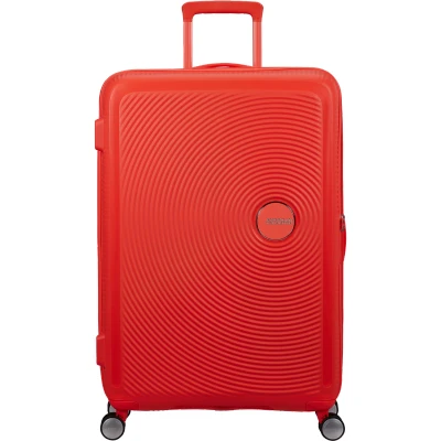 Offering over 100 litres of volume and weighing only 4.2kg, this award-winning large suitcase from our groovy Soundbox collection is secure, resistant and light! The playful circular design with contrasting matte and shiny surfaces will really cause a stir whenever you travel. Expandability, fixed TSA lock, 4 smooth rolling double wheels and handy inside organisation all help to make this a first rate suitcase choice! N.B. Make sure you are aware of airline size and weight restrictions for hold luggage. Model: Spinner (4 wheels), Colour: Neon Orange, Material: 100% Polypropylene, Height: 77.00x51.50x29.50cm, Weight: 4.20kg, Volume: 97/110 L, Warranty: Limited 3 year global warranty