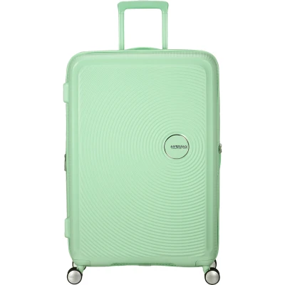 Offering over 100 litres of volume and weighing only 4.2kg, this award-winning large suitcase from our groovy Soundbox collection is secure, resistant and light! The playful circular design with contrasting matte and shiny surfaces will really cause a stir whenever you travel. Expandability, fixed TSA lock, 4 smooth rolling double wheels and handy inside organisation all help to make this a first rate suitcase choice! N.B. Make sure you are aware of airline size and weight restrictions for hold luggage. Model: Spinner (4 wheels), Colour: Pastel Green, Material: 100% Polypropylene, Height: 77.00x51.50x29.50cm, Weight: 4.20kg, Volume: 97/110 L, Warranty: Limited 3 year global warranty