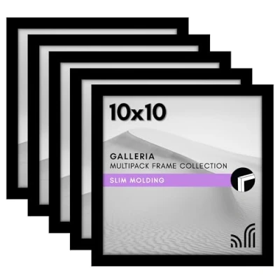Your cherished memories deserve a timeless frame. Showcase a collection of your favorite moments with these sleek black picture frames, designed to add a refined look to your home or office. Our 10x10 frames with slim molding are crafted from durable material and display 10x10 photos. The polished plexiglass adds a pristine finish, making these stylish frames stand out Display it your way with ease The picture frame set includes hanging hardware for quick and easy wall mounting and an easel stand for tabletop display, ensuring your special moments are always showcased Say goodbye to boring walls with these gallery-style frames. They make your photos or artwork look so good that you’ll wonder why you didn’t start framing things sooner. Its elevated design adds a modern touch to any space Why Choose Americanflat: Our expertly crafted decor, including our square picture frames, offers style and protects your cherished moments. Thoughtfully packaged for safe delivery, Americanflat combines quality and design to enhance any space