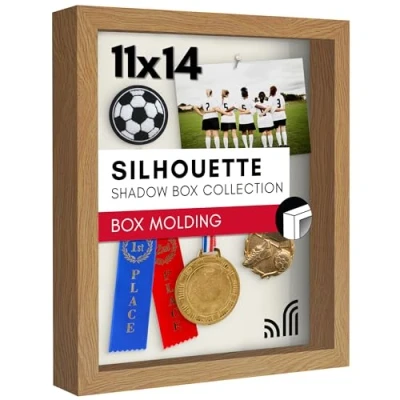 Design: Oak 11x14 inch shadow box frame with an exterior depth of 2.5 inches and an interior depth of 1.5 inches; comes with hanging hardware for hassle-free display in both horizontal and vertical formats to hang flat against the wall; can be displayed on tabletop Material: Wood shadow box frame with a polished tempered shatter-resistant glass front Quality: Durable shadow box frame with a clear tempered shatter-resistant glass front; this versatile shadow box frame can also be used as a normal frame if the inside pieces of wood are removed so the glass front lays flat against the linen backing Use and Display: Use the 6 included push pins to display your memorabilia against the linen backing; hang the shadow box on any wall or display it on tabletop, no easel necessary Protective Packaging: Americanflat developed exclusive proprietary packaging that helps ensure safe delivery of fragile items; order with confidence, click and add to cart today