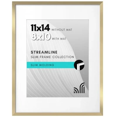 Americanflat 11x14 Thin Picture Frame in Gold Displays 8x10 With Mat and Without Horizontal Vertical Formats for Wall