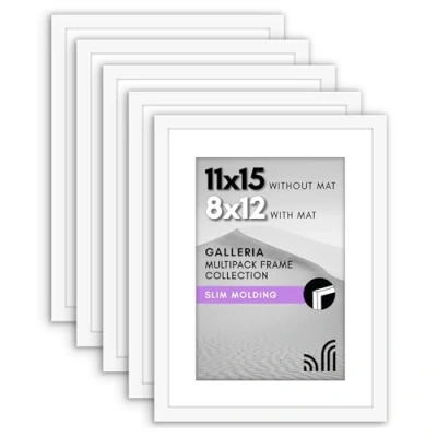 Your cherished memories deserve a timeless frame. Showcase a collection of your favorite moments with these sleek white picture frames, designed to add a refined look to your home or office. Our 11x15 frames with slim molding are crafted from durable material and display 11x15 photos or 8x12 photos with mat (actual mat size: 7.5x11.5"). The plexiglass adds a pristine finish, making these stylish frames stand out Display it your way with ease The picture frame set includes hanging hardware for both vertical and horizontal placement, ensuring quick, hassle-free installation on any wall so your special memories will always be beautifully showcased Say goodbye to boring walls with these gallery-style frames. They make your photos or artwork look so good that you’ll wonder why you didn’t start framing things sooner. Its elevated design adds a modern touch to any space Why Choose Americanflat: Our expertly crafted decor, including our photo frames, offers style and protects your cherished moments. Thoughtfully packaged for safe delivery, Americanflat combines quality and design to enhance any space