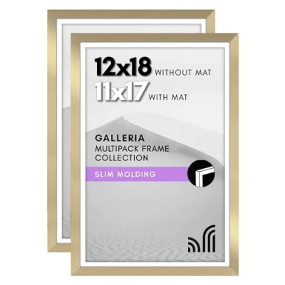 Americanflat 12x18 Poster Frame with Polished Plexiglass Set of 2 Use as 11x17 Mat or Without Galleria Collection Gallery Wall for Display Gold