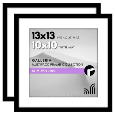 Americanflat 13x13 Picture Frame with Polished Plexiglass Set of 2 Use as 10x10 Mat or Without Galleria Collection Photo Frames for Wall Display Black