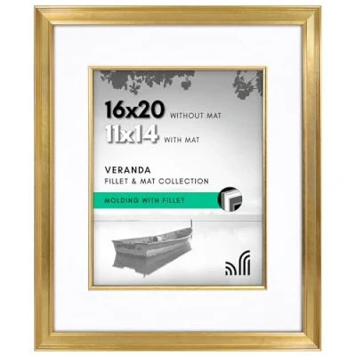 Americanflat 16x20 Picture Frame with Decorative Inner Mat Accent Displays 11x14 Photos or Without Veranda Collection Gold Vintage Frames Polished Plexiglass