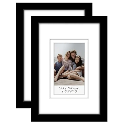 Americanflat 4x6 Picture Frame Set of 2 Use as 2x3 with Mat for Instant Print Photos Black Mini Frames Tabletop and Wall Display Shatter Resistant Glass