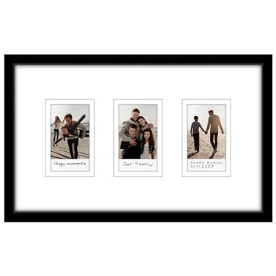 Mini Frames: This mini photo display frame is designed for use with instant-print mini photos. Put your favorite memories and people together in a single frame. Display Precious Moments: Using an instant-print camera at a wedding, family get-together or special occasion? Frame photos of your guests with this purpose-made 3 opening picture frame, and keep the memory alive. Three Opening Frame: This mini photo frame has a mat with 3 openings, each displaying a single 2.1x3.4 inch photo. Create a grid of photos, framed in a single frame; perfect photo collage frame for wall. Solid Construction: Made with PVC molding and a shatter-resistant glass cover, this 7x12 instant film frame is made to a high standard and thoroughly inspected before being shipped. Frame molding measures 0.6 inches. Protective Packaging: Each frame is wrapped carefully and sent in the Americanflat special packaging that protects it from knocks and bumps along the way, so that your mini photo frame arrives in perfect condition.