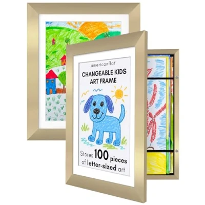 Art Display for Kids Artwork: Showcase your child's masterpieces with these frames for kids artwork. Designed to hold A4 photos or art with the mount, or 25.5x32 cm without the mount, these front-loading picture frames allow for quick and easy changes. Display Capacity: These children's art frames hold up to 100 pieces of artwork, making them ideal for letter-size paper. Designed as art frames for kids art, these display frames easily blend into any decor aesthetic. Timeless Design: Made of engineered wood moulding, these kids art frames have a 5 cm thickness. As one of the kids art frames changeable options, its gallery-style design with built-in keyholes allows for wall display, both horizontally and vertically. Personalised Gift: These kids frames for artwork make a unique gift for parents or loved ones, a great way to cherish memories. These child artwork frames with storage are perfect for special occasions such as Mother's Day, Father's Day, and birthdays. Experience the Difference: Americanflat is your trusted choice for quality frames and home decor. Our elevated craftsmanship and protective packaging ensure a hassle-free arrival.