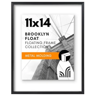 Make it float. Make it unforgettable. This floating picture frame creates a stunning visual effect, making your image appear to "float" within the frame. A simple way to elevate and showcase your favorite photos. Our 11x14 frame with metal molding is crafted from durable aluminum material and features a double-sided design with an inner insert to fit 8x10 photos, smaller artwork, and flat items between a shatter-resistant glass front and plexiglass backing. Display it your way with ease! The black picture frame includes hanging hardware for both vertical and horizontal placement, ensuring quick, hassle-free installation on any wall so your special moments will always be beautifully showcased. Sleek, slim, and seriously stylish, these floating frames enhance your home or office with their minimalist design - say goodbye to boring walls for good. Plus, the timeless black finish adds a modern touch to any space. Why Choose Americanflat: Our expertly crafted decor, including this photo frame, offers style and protects your cherished moments. Thoughtfully packaged for safe delivery, Americanflat combines quality and design to enhance any space.