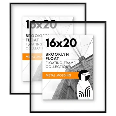 Make it float. Make it unforgettable. These floating picture frames create a stunning visual effect, making your image appear to "float" within the frame. A simple way to elevate and showcase your favorite photos. Our 16x20 frames with metal molding are crafted from durable aluminum material and feature a double-sided design with an inner insert to fit 11x14 photos, smaller artwork, and flat items between a shatter-resistant glass front and plexiglass backing. Display it your way with ease! The black picture frames include hanging hardware for both vertical and horizontal placement, ensuring quick, hassle-free installation on any wall so your special moments will always be beautifully showcased. Sleek, slim, and seriously stylish, our floating frames enhance your home or office with their minimalist design - say goodbye to boring walls for good. Plus, the timeless black finish adds a modern touch to any space. Why Choose Americanflat: Our expertly crafted decor, including these photo frames, offers style and protects your cherished moments. Thoughtfully packaged for safe delivery, Americanflat combines quality and design to enhance any space.