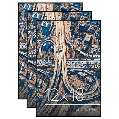 Americanflat Front Loading 12x18 Poster Frame with Shatter Resistant Glass Set of 3 Metropolitan Collection Photo for Wall Display Black