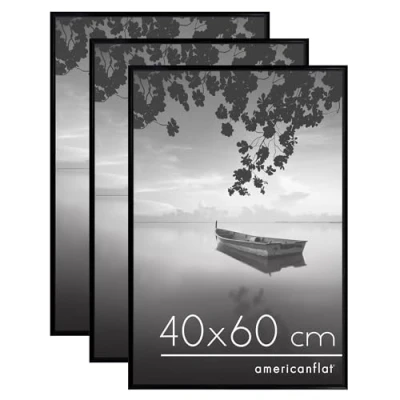 Display your posters: Frame posters or photos and display them with these wall frames. This package includes 3 black frames, perfect for posters, art prints or photos. 40 x 60 cm photo frames: These wall photo frames measure 40 x 60 cm each. Their slim edges with a minimal look have a depth of 1cm to maximize the colours of your poster. How to frame your posters: Place your poster behind the plexiglass and slide the four sides of the frame all around the perimeter. Changing and replacing posters, photos or prints is easier than ever. Hang them in landscape or vertical: each frame in this set measures 40 x 60 cm and can be hung on the wall without difficulty thanks to the integrated hooks. MADE TO LAST - Made with high quality materials and meticulous attention, our frames will keep your memories intact for years and years. Add this item to your cart now and invest in lasting quality with Americanflat!