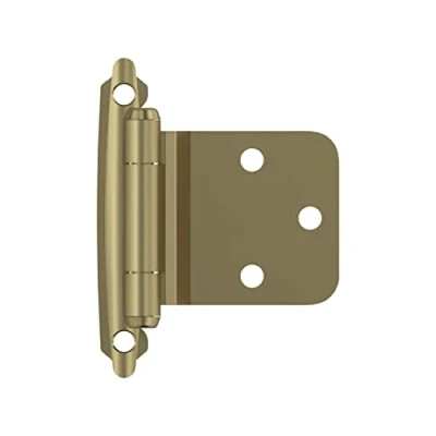 Variable overlay hinge with a 30 degree reverse bevel. Overlay means the cabinet door "overlays", or overlaps, the cabinet frame. This hinge is a Variable Overlay because your door does not have to overlap the frame by a set dimension. Heavy duty steel contruction with a decorative Golden Champagne finish. Made for a face frame cabinet style commonly used in kitchens and bathrooms, or on furniture. Dual-spring mechanism for quiet, consistent self-closing power. The included door bumpers soften the sound of the cabinet door snapping closed. Built to last - Every hinge series is tested for durability in conditions exceeding all KCMA certification requirements., Weight: 0.21 pounds, Manufacturer: Amerock