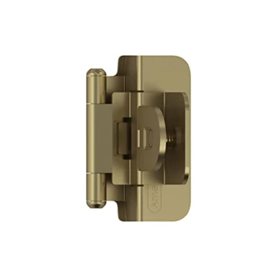 Pair of double demountable hinges for a standard cabinet with a 3/8in inset. While we strive to accurately display colors, they may appear differently due to variations in individual monitor settings, which are beyond our control Dualspring mechanism for quiet, consistent selfclosing power. The included door bumpers soften the sound of the cabinet door snapping closed. Easy mounting hinges slip into prerouted slots. Built in speciallyangled clamps for reliable holding power., Manufacturer: Amerock