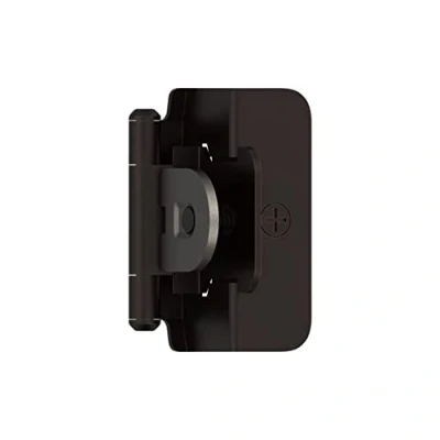 HIGH QUALITY - Pair of double demountable hinges designed for face frame cabinets with a 1/2-inch (13 mm) overlay. "Overlay" refers to how much the cabinet door covers, or overlaps, the cabinet frame when it's closed. Please measure carefully before ordering. DURABLE - Heavy-duty steel construction with a decorative Oil-Rubbed Bronze finish. RELIABLE - Dual spring mechanism for quiet, consistent self-closing power. The included door bumpers soften the sound of the cabinet door snapping closed. INSTALLATION - Easy-mounting hinge designed to slip effortlessly into pre-routed slots, with a specially angled construction that ensures reliable holding power and long-lasting stability. DISCLAIMER - We do our best to show colors accurately, but they might look different on your screen due to individual monitor settings., Weight: 0.32 Pounds, Manufacturer: Amerock Corp