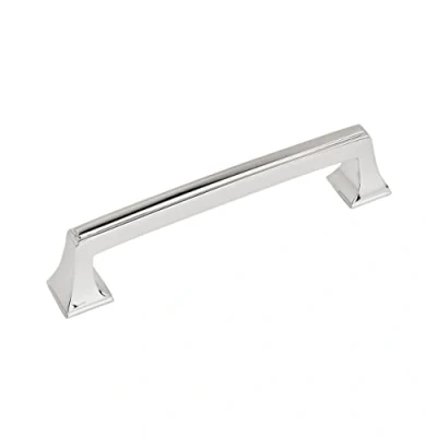 Traditional style cabinet pull adds a sophisticated, classic touch to cabinets, drawers or furniture and has an overall length of 5-13/16 inches with a 5-1/16 inch center-to-center measurement between mounting holes Polished Chrome cabinet handle features a mirror-like shine and cool blue undertones that coordinates with top plumbing and lighting brands for a timeless, seamless look Made with high-quality zinc, this Amerock cabinet pull features detailed craftsmanship and offers exceptional durability for long-lasting reliability you can trust Premium quality cabinet hardware pull comes with mounting hardware for easy, hassle-free installation Backed by a limited lifetime warranty ensuring qualiy craftsmanship and material integrity, Weight: 0.33 pounds, Manufacturer: Amerock