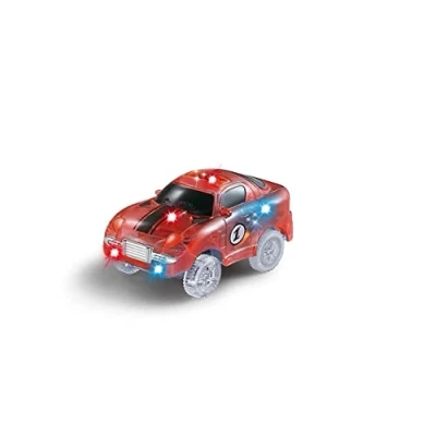 Neon coloured rail parts Glow in the dark Racing car with LED lighting Sticker set Vehicle electrically operated Track length: approx. 3.35 m, Manufacturer: AMEWI