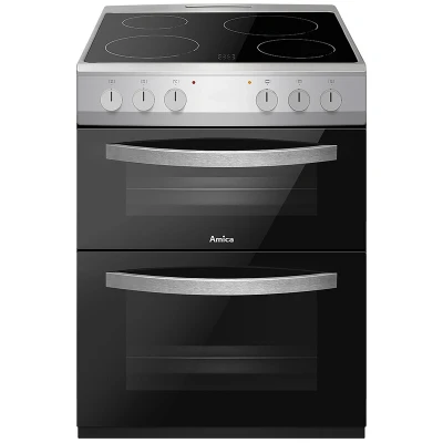 Amica AFC602SS 60cm Ceramic Electric Cooker with Double Oven, A Rated, 2 Year Warranty Silver