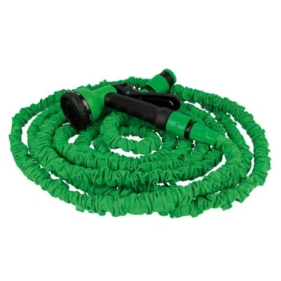 Amig 2073 Extendable Hose 15m Includes Accessories and 8 Function Watering Gun Supports up to 6 Bar Pressure Colour Green Double Latex, Blue, Default