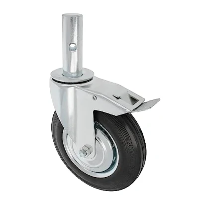 Amig 2575 Male Scaffolding Wheel with Brake High Load 200kg Capacity Easy Installation Indoor & Outdoor Use, Black/White, Rubber